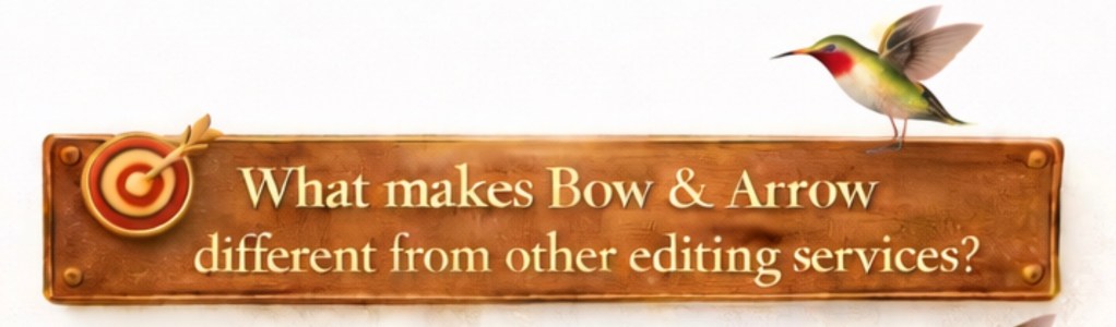 Editing is not about force, but about alignment. When the bow is properly set and the arrow carefully aimed, the writing finds its mark. This metaphor reflects an editing approach rooted in precision with care, where clarity, voice, and intention work together so ideas land exactly where they are meant to.